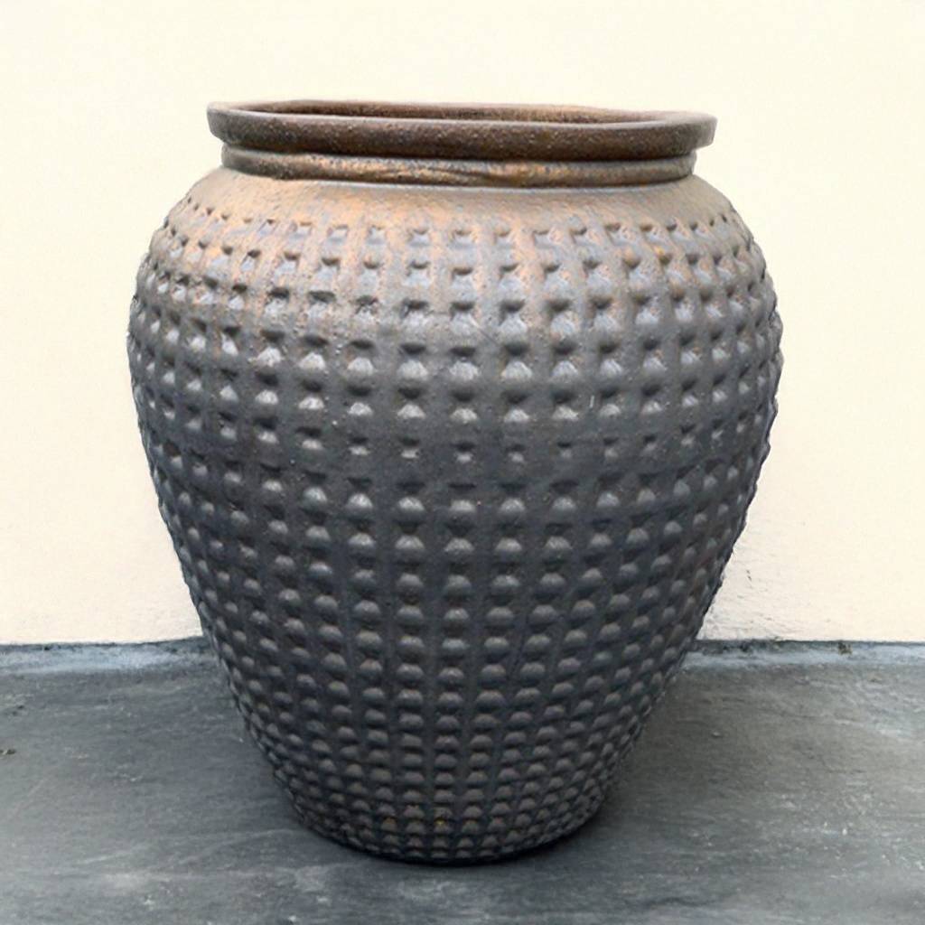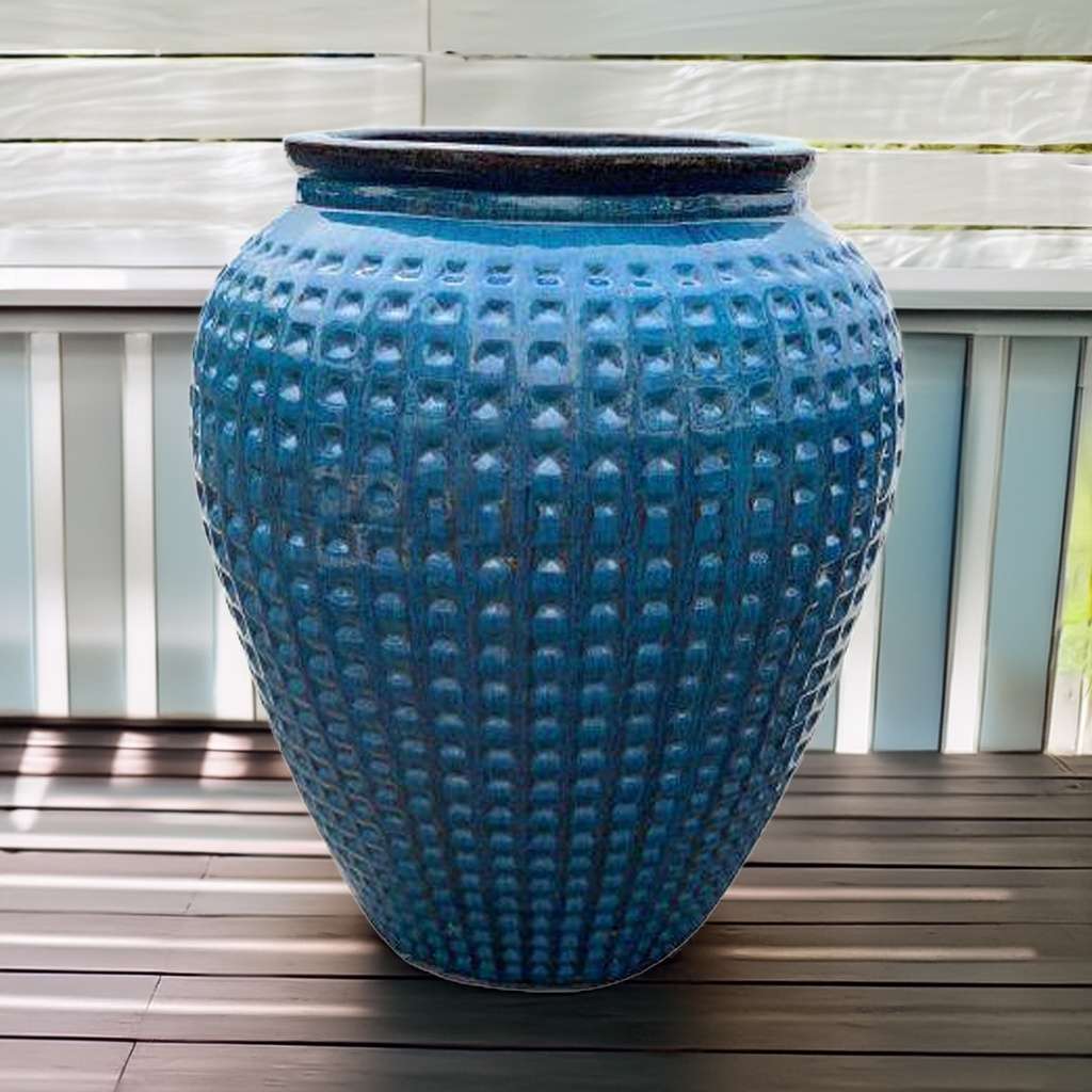 Crafted in Vietnam using time-honored techniques, this large ceramic planter (28"D x 36"H) features a raised dimple texture that adds depth and character to any landscape or retail display. Designed for durability and year-round outdoor use, it’s ideal for professional landscapers and garden centers looking to offer eye-catching, weather-resistant pottery. The generous size accommodates larger plants and creates instant visual impact in both commercial and residential settings. Available in fully customizable colors to match seasonal inventory or brand themes. A dependable, artisan-made piece that helps your business stand out with high-quality, distinctive ceramic offerings.