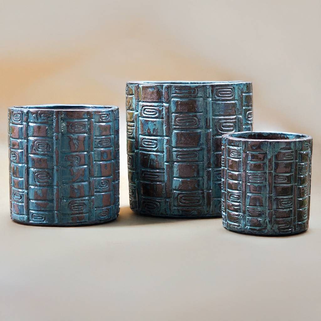 This round ceramic planter set—measuring 23"D x 24"H, 19"D x 16"H, and 14"D x 9"H—features a carved geometric pattern that adds texture and a striking tribal aesthetic. The wide-mouthed cylindrical form offers generous planting space, perfect for layered arrangements, flowering shrubs, or bold succulents. Designed to nest compactly for efficient B2B shipping and merchandising, this set is a strong choice for independent garden centers and landscape suppliers. With fully customizable colors, it easily fits regional palettes and seasonal themes, giving retailers the flexibility to match customer preferences and boost visual appeal in-store or on-site.