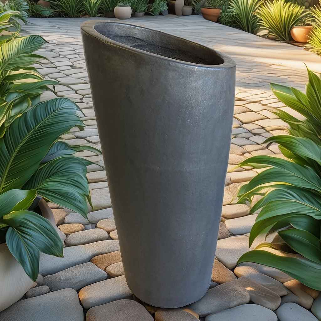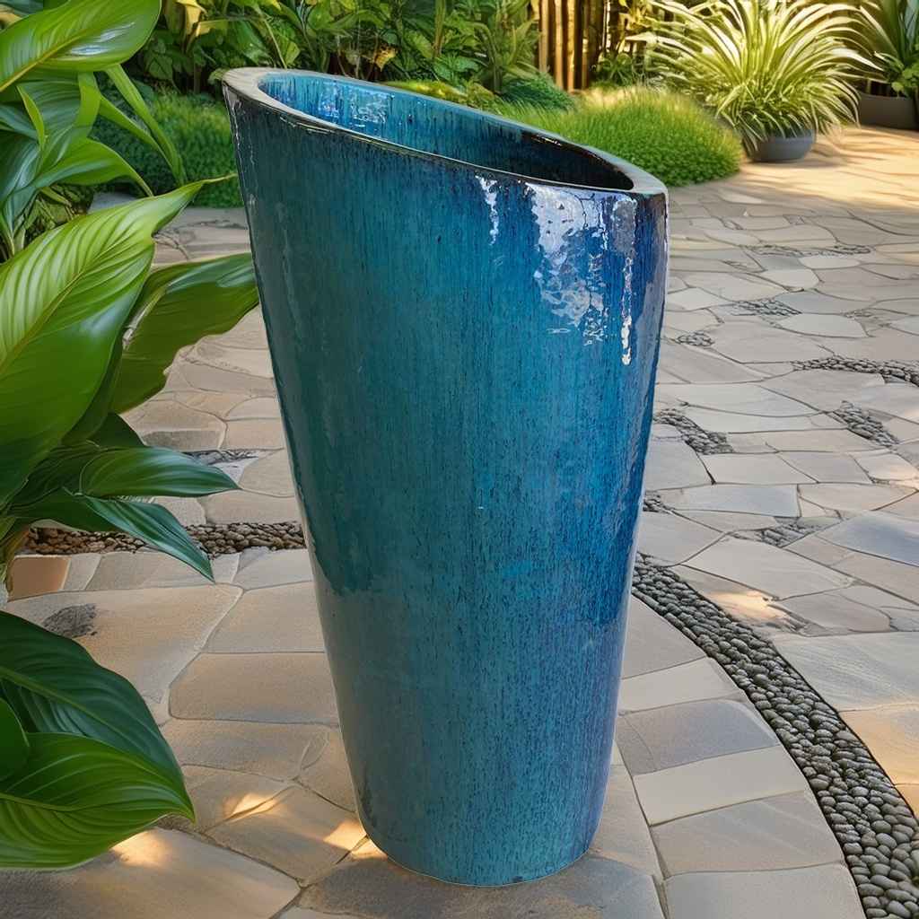 Make a statement with our Slanted Ceramic Planter – 17"L x 17"W x 34"H – a bold, modern vessel ideal for showcasing tall plants or ornamental grasses. The asymmetrical rim offers a dynamic silhouette that adds movement and interest to both indoor and outdoor spaces. Handcrafted in Vietnam, each piece is high-fired for durability and frost resistance. Colors are fully customizable to align with your garden center's seasonal palettes or your landscape projects. This planter is a standout choice for designers, nurseries, and retailers looking to offer something truly unique.