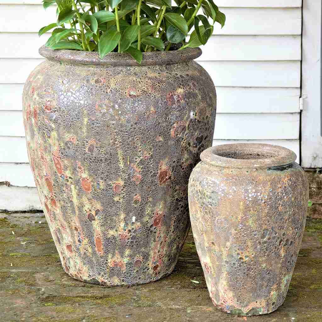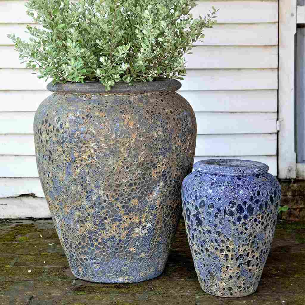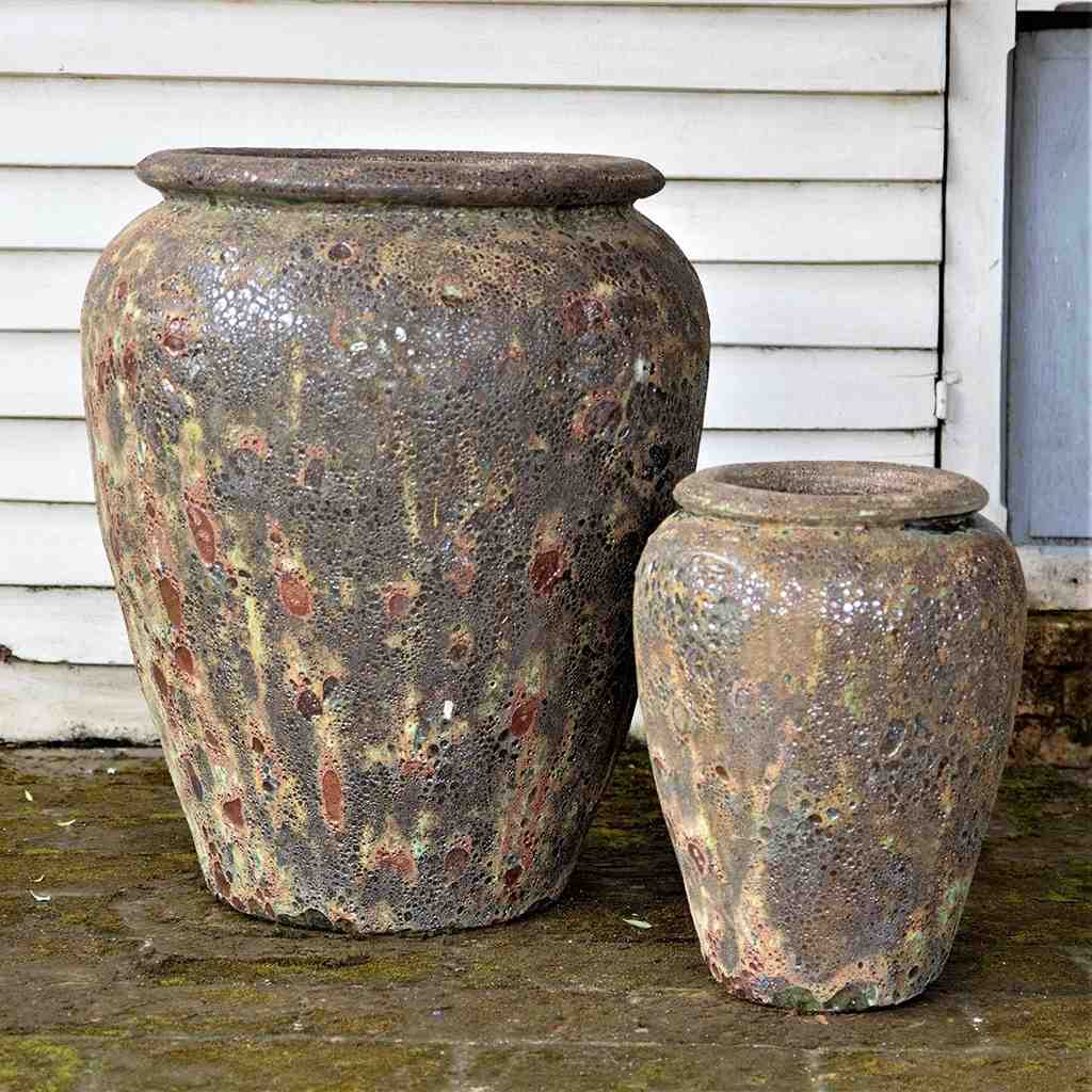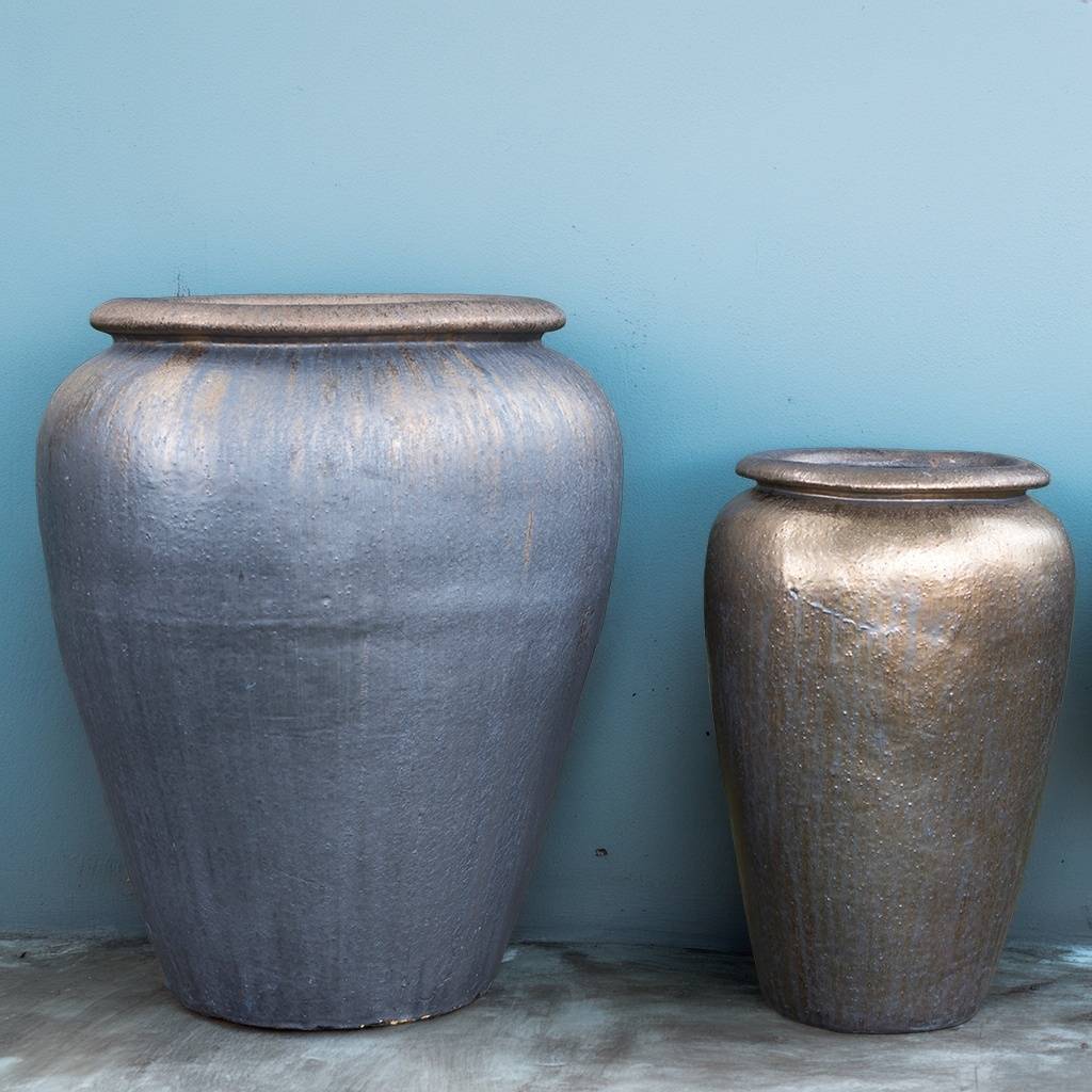 Add texture and depth to your pottery collection with this handcrafted Vietnamese planter set, available in 24"D x 28"H and 14"D x 22"H sizes. The unique cratered surface and warm, earthy tones make these pots ideal for landscape designs, retail garden displays, and container arrangements. Their durable, frost-resistant ceramic build ensures long-term performance in all climates. Trusted by nurseries and garden centers nationwide, these artisan vessels elevate your outdoor offerings with a premium, handcrafted appeal. Custom colors available to match your seasonal themes or brand palette—perfect for buyers looking to stand out with quality and design.