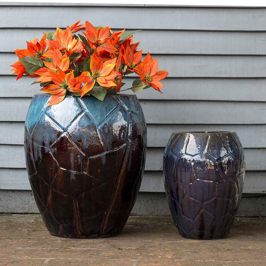This bold ceramic jar planter set features geometric surface detailing and a multi-tone glaze that delivers standout visual appeal in retail displays and landscape designs. Crafted in Vietnam using high-temperature firing techniques, these pots are built for durability in outdoor environments. A reliable choice for nurseries, garden centers, and landscapers, this set offers customizable color options to align with seasonal trends or regional palettes. Its distinctive shape and finish help elevate container plantings and upscale installations alike.