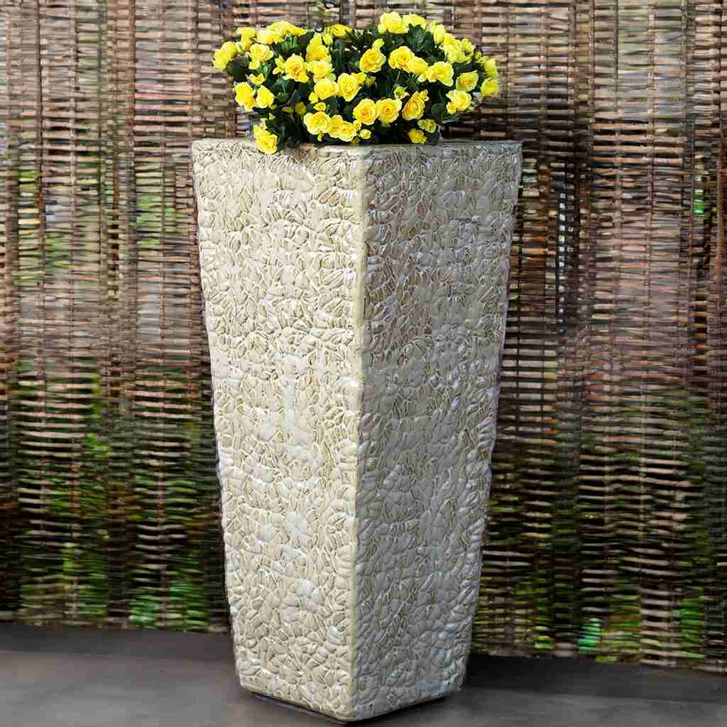 The Stone Relief Tall Planter from TT Pottery is designed to stand out with its elongated square profile and striking relief finish. Its tall, tapered form adds vertical emphasis, making it an excellent choice for framing entryways, accenting patios, or showcasing specimen plants. The stone-inspired relief detailing enhances its artisan appeal while complementing both modern and rustic garden settings. Made from durable, high-fired ceramic, it withstands weather exposure, ensuring long-lasting performance. Retailers and garden centers will appreciate its commanding presence that draws attention in displays, while landscapers can use it to bring structure and height to outdoor designs. Perfect for both residential and commercial projects, this planter offers timeless style with practical durability.