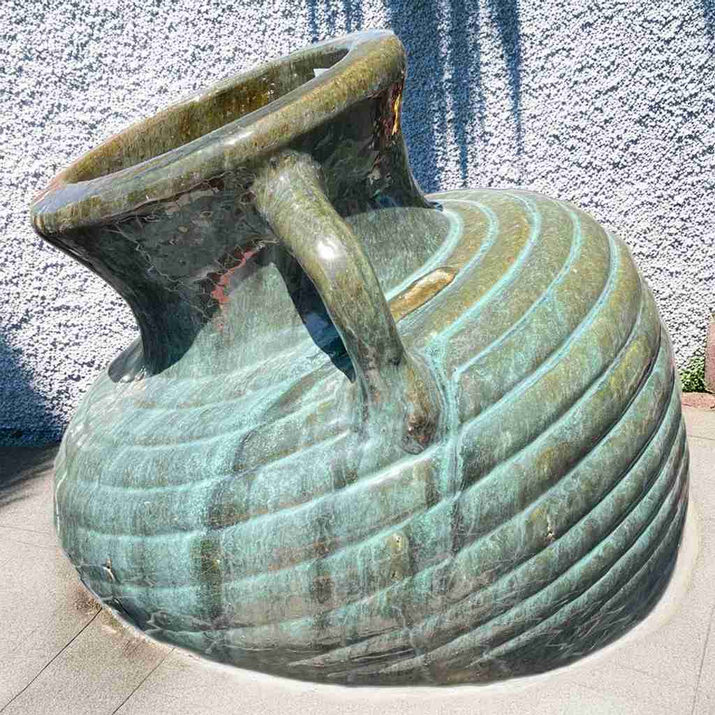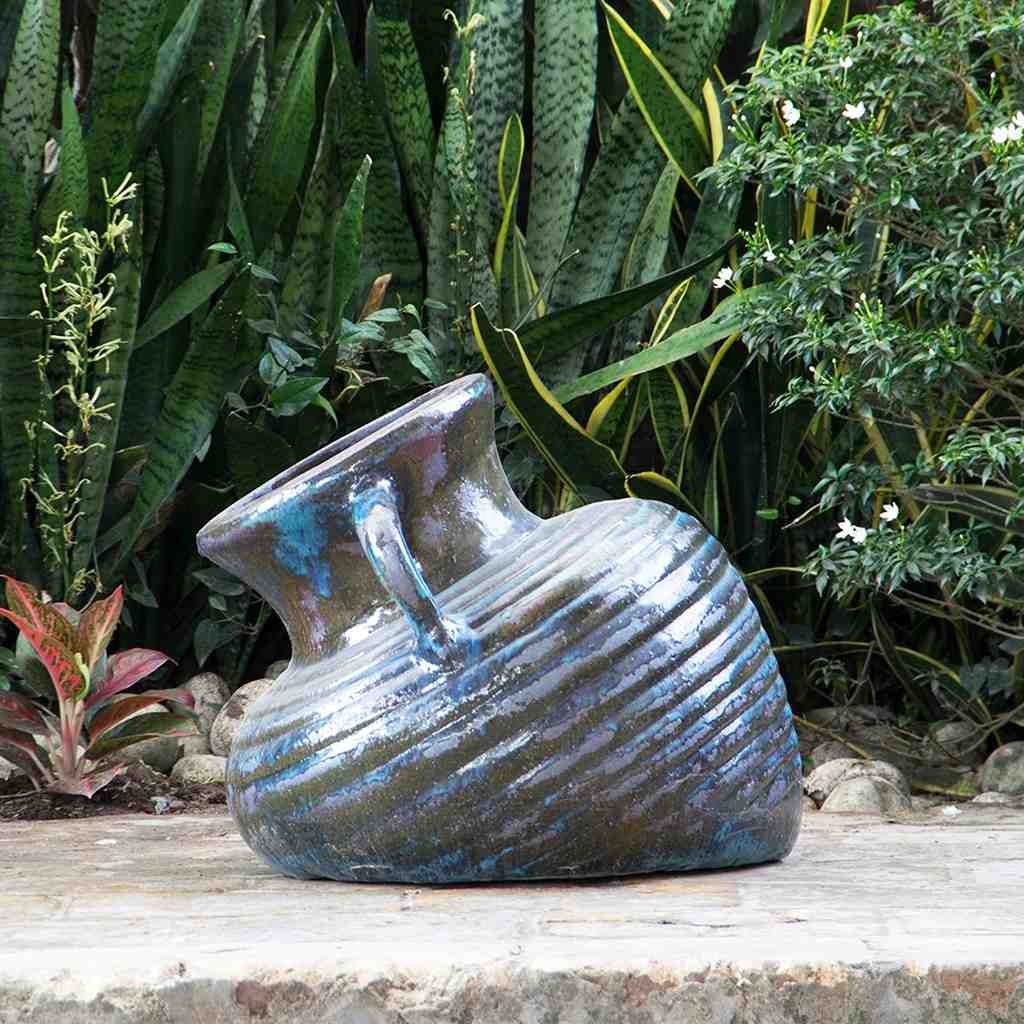 Add bold character to any outdoor landscape with this oversized tilted ceramic jar planter. Its ribbed surface and angled profile make it a standout accent for garden beds, patios, and commercial installations. Handcrafted in Vietnam, this piece delivers both artisan craftsmanship and practical function. Ideal for independent garden centers, nurseries, and landscape designers looking to elevate their offering with unique, high-impact planters. Colors are fully customizable to match your clients' design palettes or seasonal inventory. A reliable wholesale option for those seeking premium outdoor pottery with eye-catching appeal.