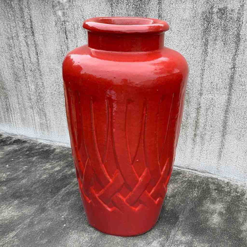 This tall sculpted ceramic vase features a woven relief pattern that adds visual interest and textural depth—perfect for retail displays or landscape accents. The 31" height creates a commanding vertical presence ideal for framing entryways, patios, or garden features. Built for durability and visual impact, it's a favorite among landscape designers and garden centers. Customizable color options let you tailor inventory to match seasonal palettes or regional demand, making this a versatile addition to any product mix. Crafted in Vietnam using high-fired ceramic for superior weather resistance and long-term appeal.